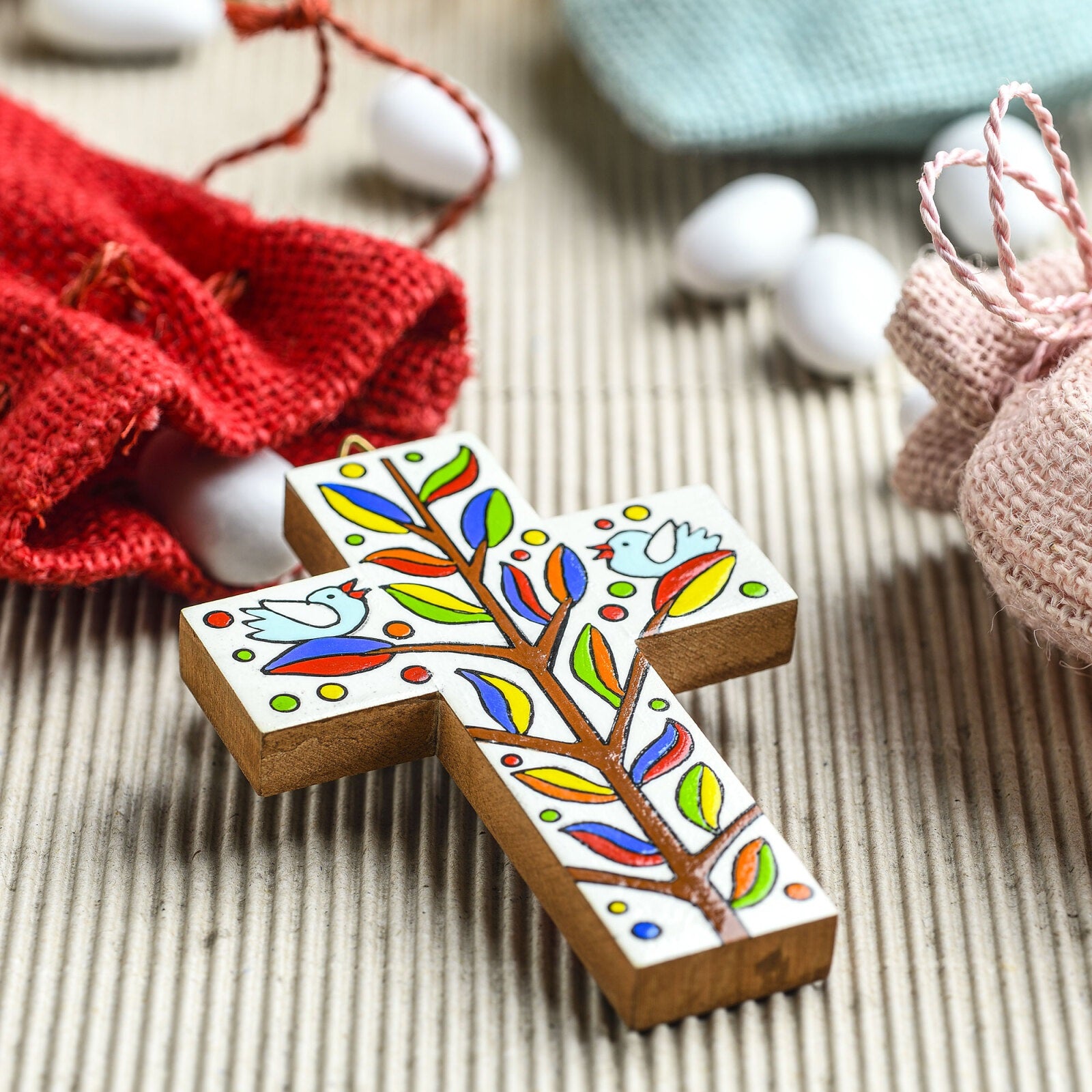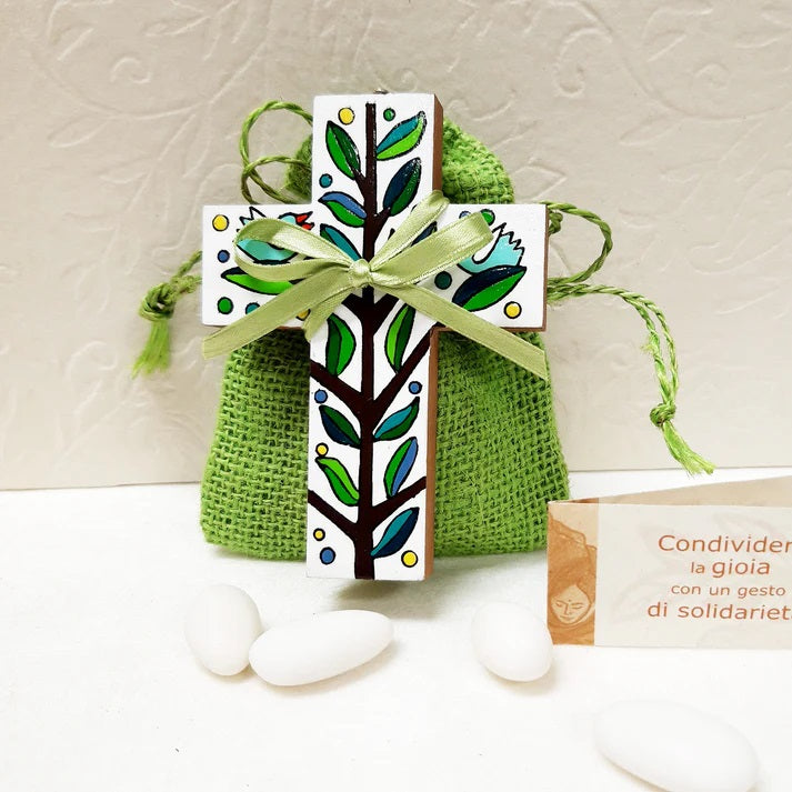- Molto simbolica questa bomboniera con la croce appendibile che raffigura l'albero della vita.