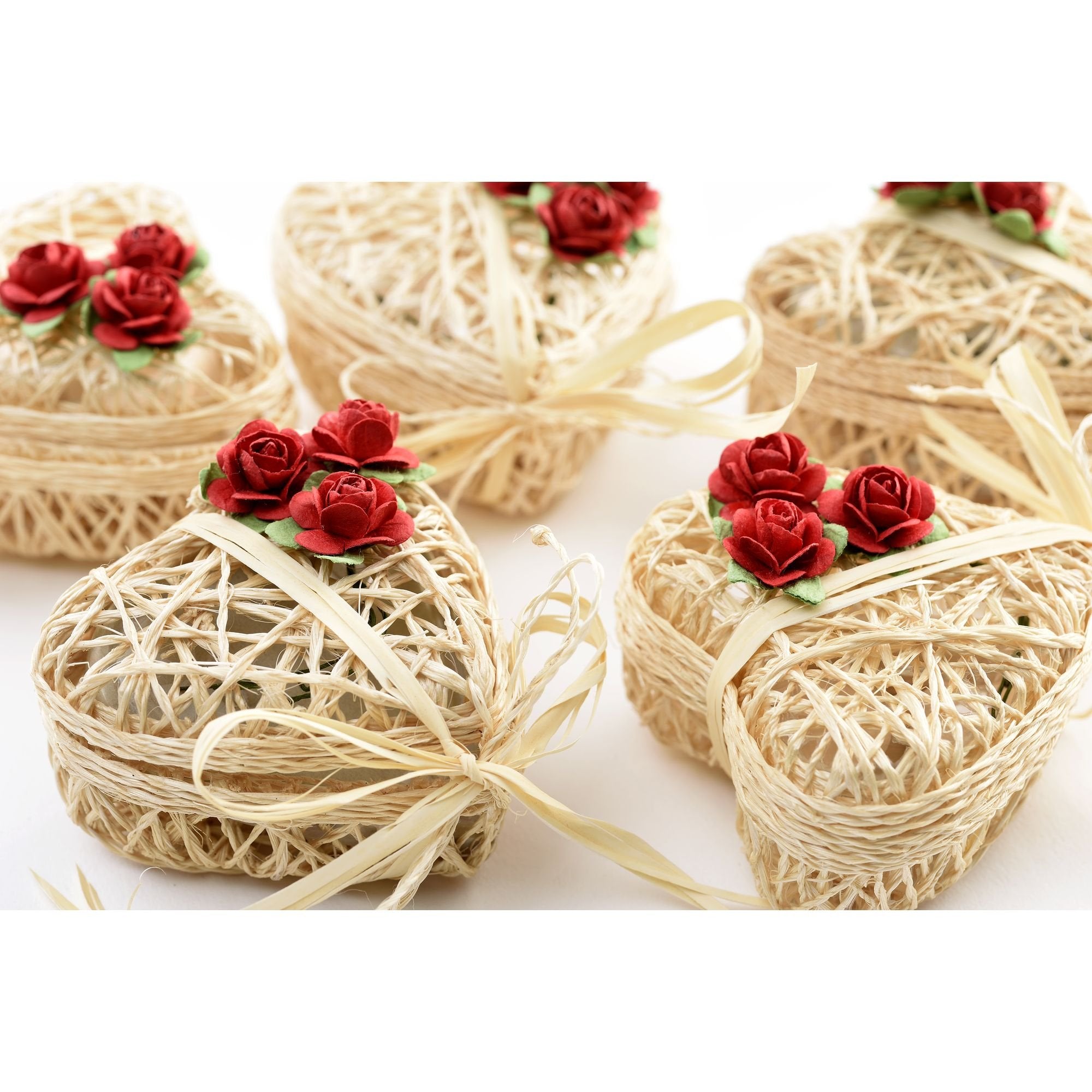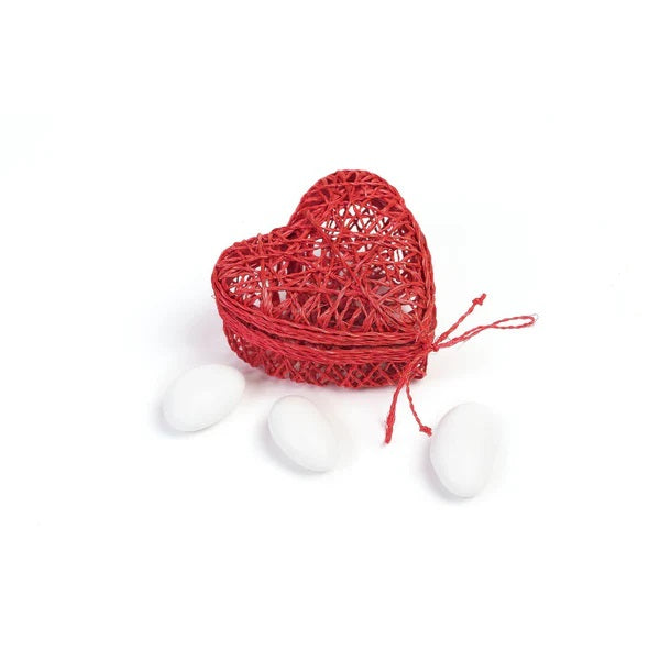 Scatolina cuoricino bombata in fibra abaca in avorio e rosso